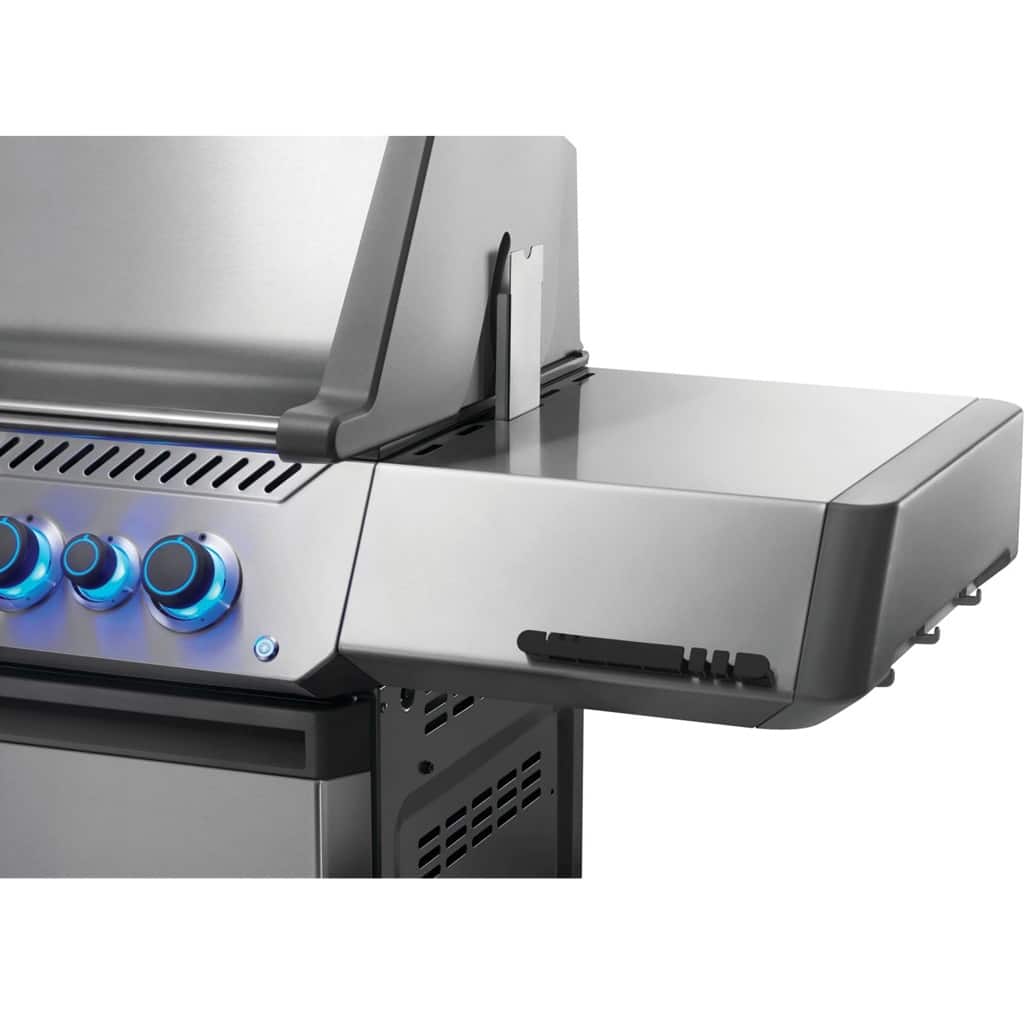 legendäre Napoleon® SIZZLE ZONE™ – dem Infrarot-Seitenbrenner, der Steaks mit über 800°C außen knusprig und innen saftig zart grillt.