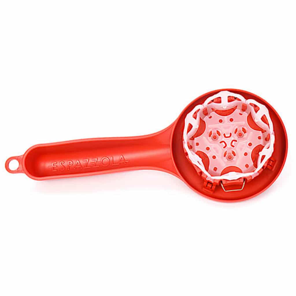 Die Espazzola besteht aus einem steifen Becherteil, der wie ein Siebträger in die Brühgruppe eingehängt werden kann. In diesem Becher wird ein flexibler Einsatz befestigt – die Membran.