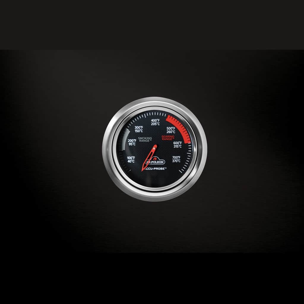 Der Prestige 500 Erdgasgrill aus Edelstahl mit Infrarot-Seiten- und Heckbrenner hebt das Grillerlebnis auf die nächste Stufe. Ein größerer Heckbrenner und ein größerer Infrarot-Seitenbrenner sorgen für mehr Leistung. LED-Kontrollknöpfe bieten nicht nur eine Leuchtfunktion für die nächtliche Unterhaltungsshow, sondern leuchten außerdem dank der Funktion SafetyGlow™ rot für einen zusätzlichen Hinweis, dass die Brenner eingeschaltet sind. Der abnehmbare Warmhalterost sorgt für Ordnung und die versteckten Besteckhaken bieten zusätzlichen Platz für die Zubereitung. Erfreuen Sie sich am eleganten und modernen Design und entdecken Sie die einzigartigen Garmethoden, die Sie bereits vom überzeugenden Prestige 500 Gasgrill gewohnt sind.