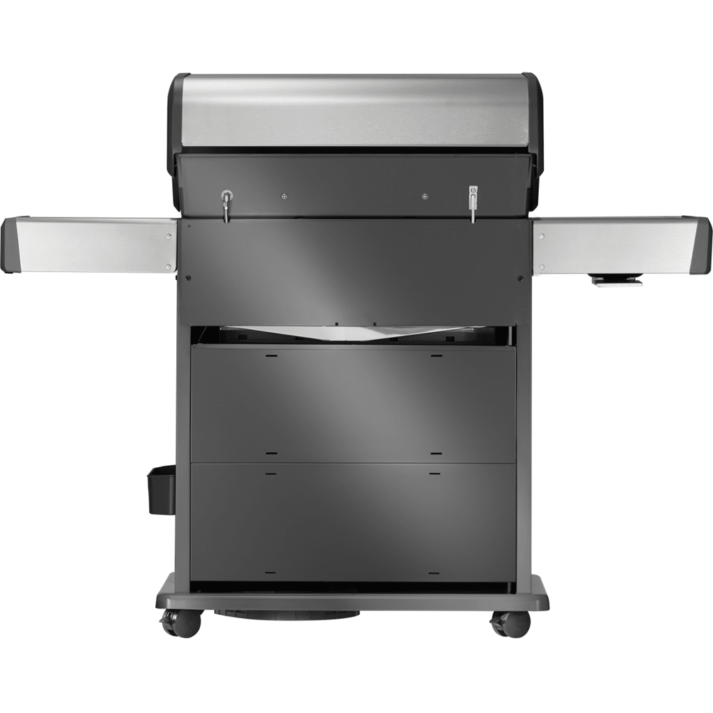 Der Propangasgrill Rogue® PRO-S 525 aus Edelstahl vereint Top-Qualität und Eleganz. Mit dem Infrarot-Drehspieß-Heckbrenner zaubern Sie saftige Bratengerichte und mit dem großen Infrarot-Seitenbrenner bereiten Sie Beilagen und Saucen in Restaurantqualität zu und braten Fleisch perfekt an. Die einmaligen WAVE™ Grillroste sorgen für eine gleichmäßige Erhitzung und verhindern ein Durchfallen der Speisen, während die zweistufigen Edelstahl-Flammschutzeinsätze Fettspritzer verdampfen lassen, so dass Ihr Grill makellos sauber bleibt. Die ergonomischen SaftyGlow™ Drehregler leuchten bei angeschaltetem Brenner rot und sorgen so für eine einfache und sichere Bedienung. Eine praktische, platzsparende, klappbare Seitenablage und leicht zu fixierende Rollen erhöhen den Komfort zusätzlich. Die langlebige und elegante Edelstahlkonstruktion ist leicht zu pflegen und widersteht allen Witterungen. Heben Sie Ihr Outdoor-Grillerlebnis mit diesem hochwertigen und eleganten Grill auf die nächste Stufe. Willkommen zur ultimativen Grillerfahrung mit dem Rogue® PRO-S Grill.