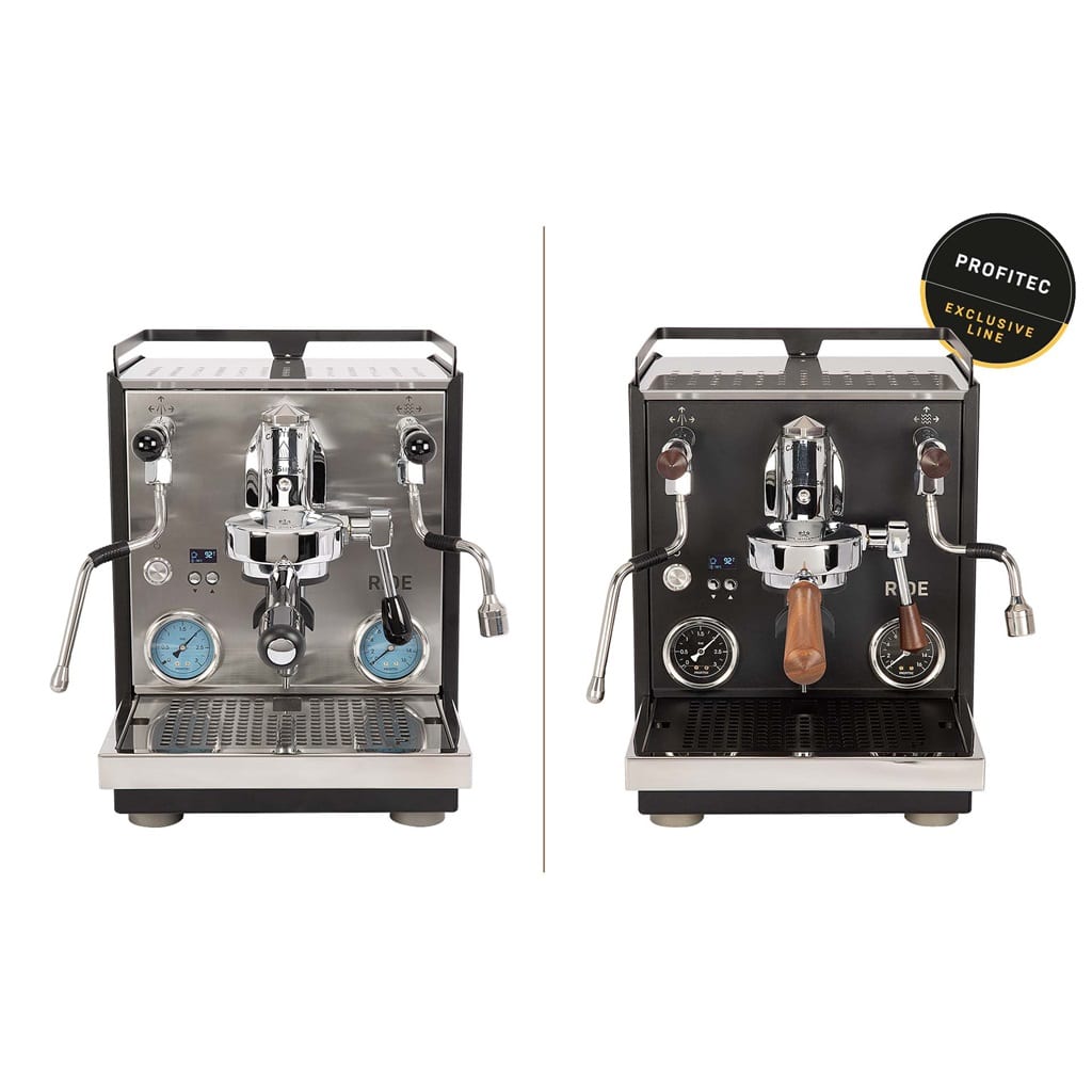 Die elegante Profitec RIDE Exclusive Line (matt black) bietet kompromisslose Profi-Technik in einem stylischen Design: Dual-Boiler-System mit individueller PID-Steuerung, E61-Brühgruppe und modularer Portafilter – veredelt durch schwarze Seitenpaneele und handgefertigte Walnussgriffe. Eine Top-Wahl für anspruchsvolle Home-Baristas oder stilvolle Kaffees auf kleinem Raum.